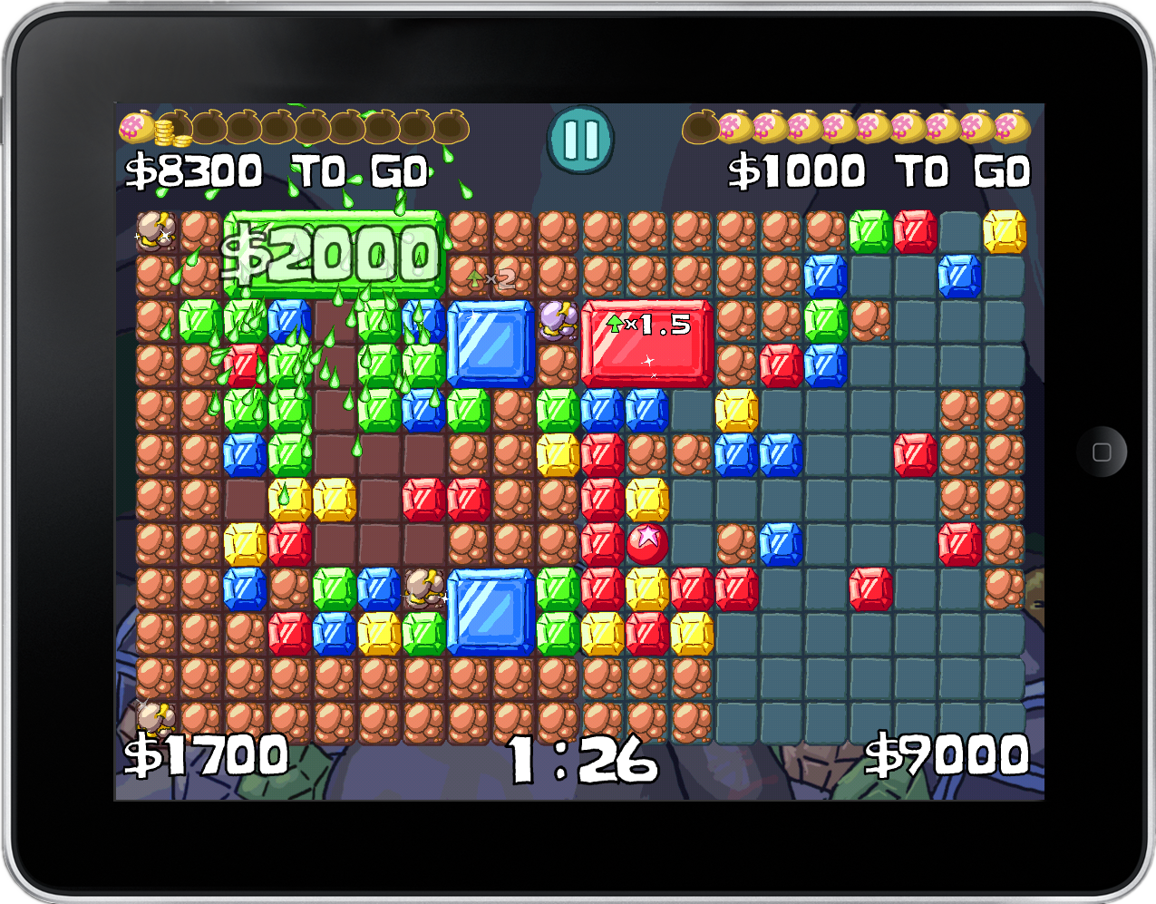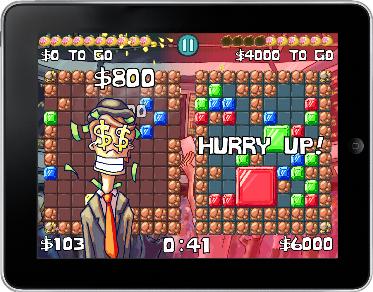 Group like-coloured gems together to make them bigger and more valuable. Cash them in for incredible rewards! Avoid falling rubble, detonate bombs, and chase off sneaky robbers.